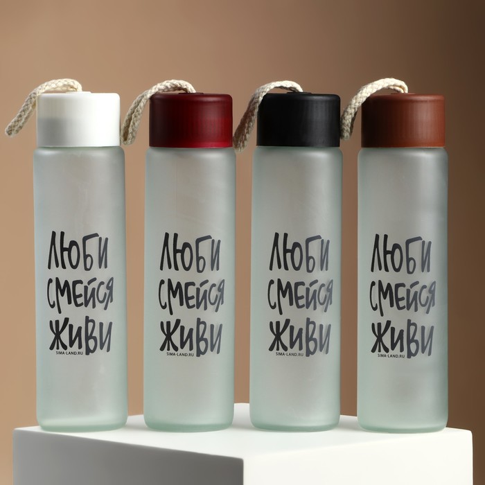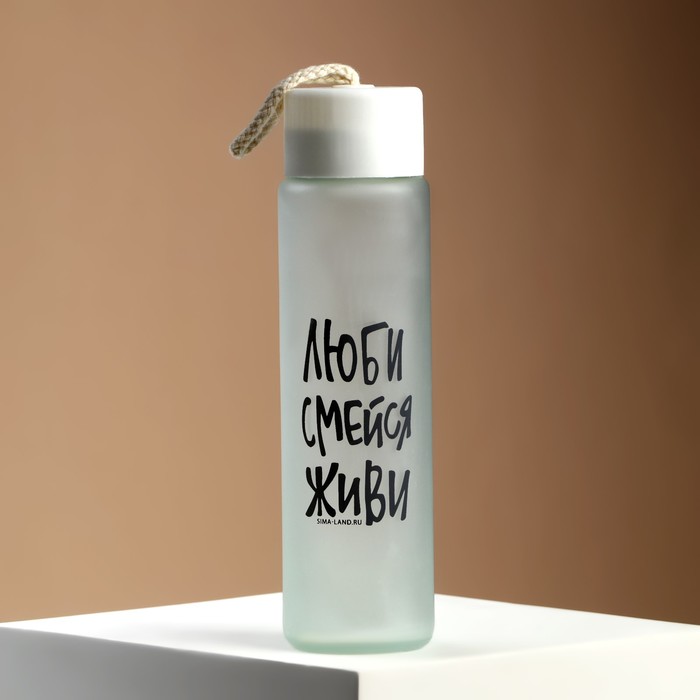 Бутылка для воды стеклянная «Люби, смейся, живи», 350 мл, МИКС