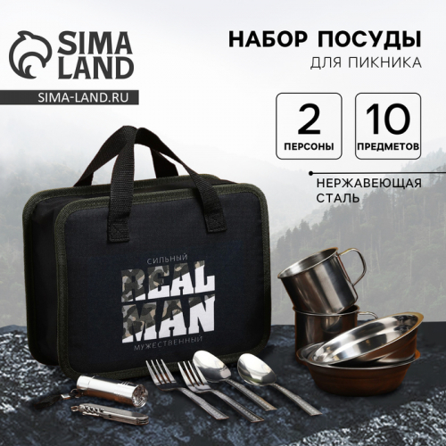 Набор для пикника с сумкой — идеальное решение для комфортного отдыха на природе. В комплект входят 10 предметов: две тарелки, две кружки, две ложки, две вилки, фонарик и мультитул.