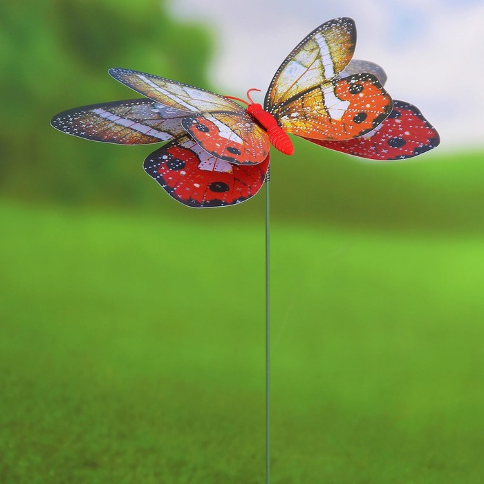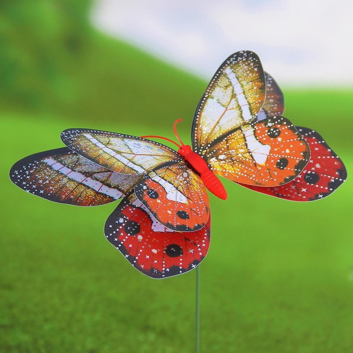 * Крупный размер: общая высота каждого элемента составляет 45 см. Фигурка бабочки размером 20×14 см имеет солидные габариты — хорошо просматривается на открытых пространствах и среди высокорослых растений.