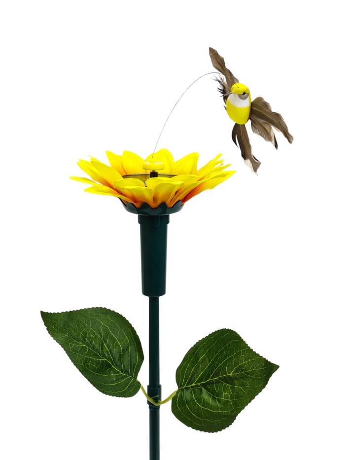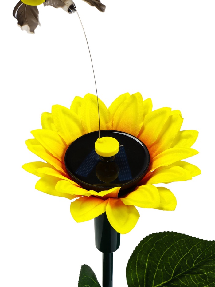 * Механизм с солнечной батареей: для работы требуется предварительная зарядка от солнечного света. После зарядки птичка начинает летать вокруг подсолнуха, создавая оживлённую сцену.