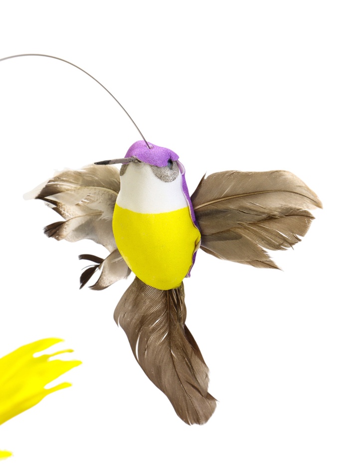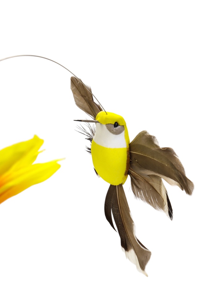 * Детали композиции: жёлтый подсолнух закреплён неподвижно, а декоративная птичка плавно вращается вокруг цветка. Такое решение добавляет сценке натуральности.