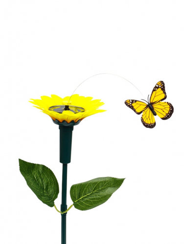 Штекер летающий «Подсолнух с птичкой» на солнечной батарее — это декоративный элемент для оформления цветочных горшков, кашпо и клумб. Устройство создаёт динамичную композицию, где птичка кружится вокруг неподвижного подсолнуха.