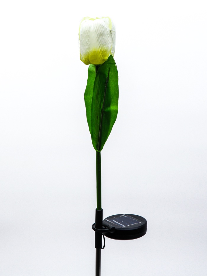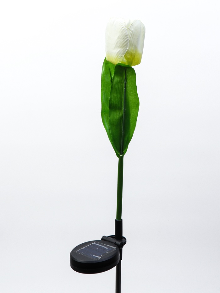 Вечерняя элегантность: штекер привносит в ночной сад элемент утончённости. Белое сияние тюльпана создаёт сдержанные световые акценты — подчёркивает красоту растений без излишней яркости.