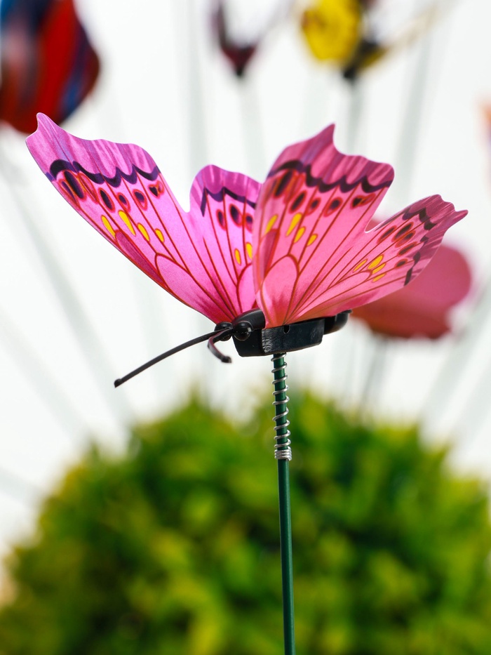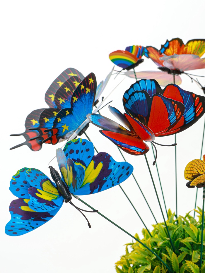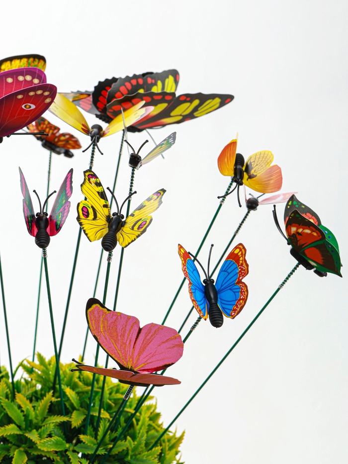 * Три разных размера: маленькие бабочки подходят для низких цветов и горшков, средние — для бордюров, крупные — для высоких растений и кустарников. Можно создавать многоуровневые композиции.