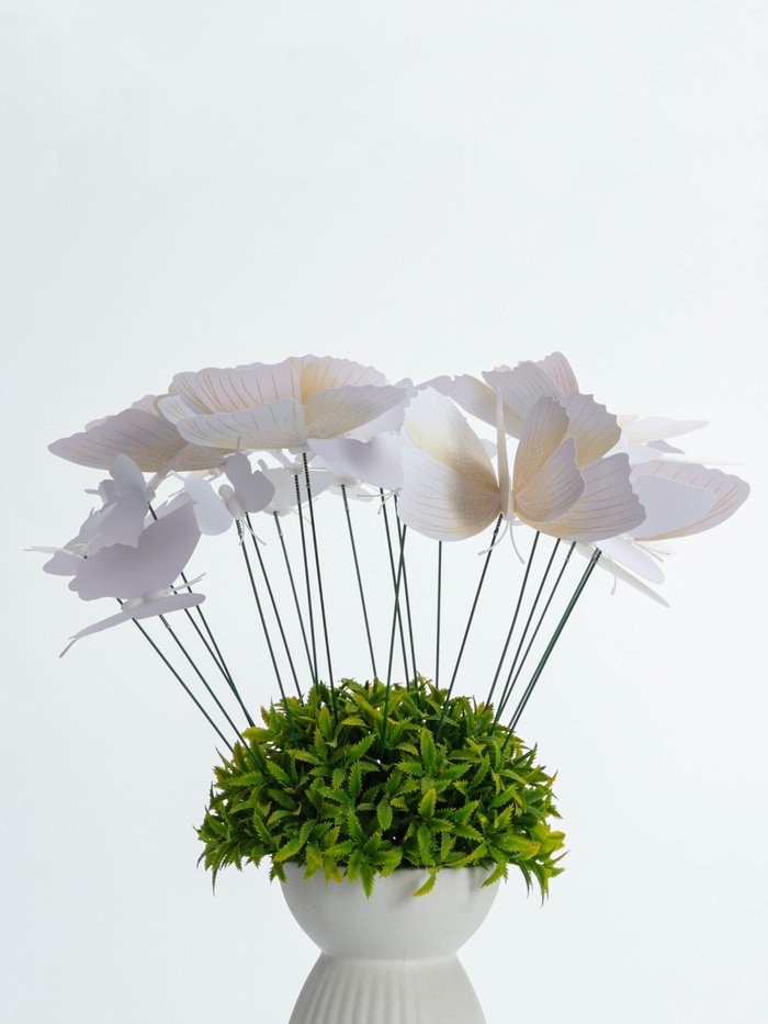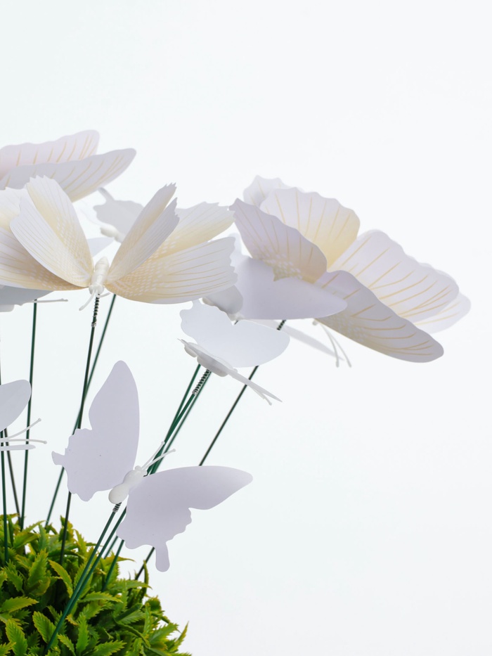 Для сада и дома: штекеры расставляют на клумбах, в контейнерах и балконных ящиках. Разные размеры позволяют создавать ярусные композиции. С белыми «Бабочками» растения выглядят более оформленными и динамичными. Решение для быстрого преображения садового пространства.