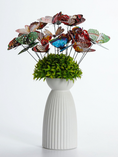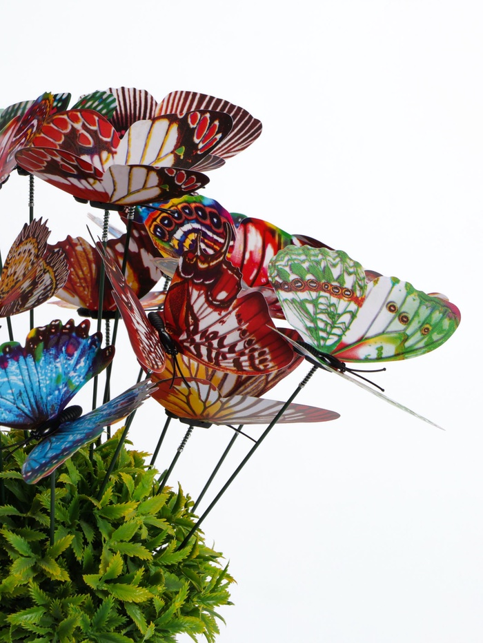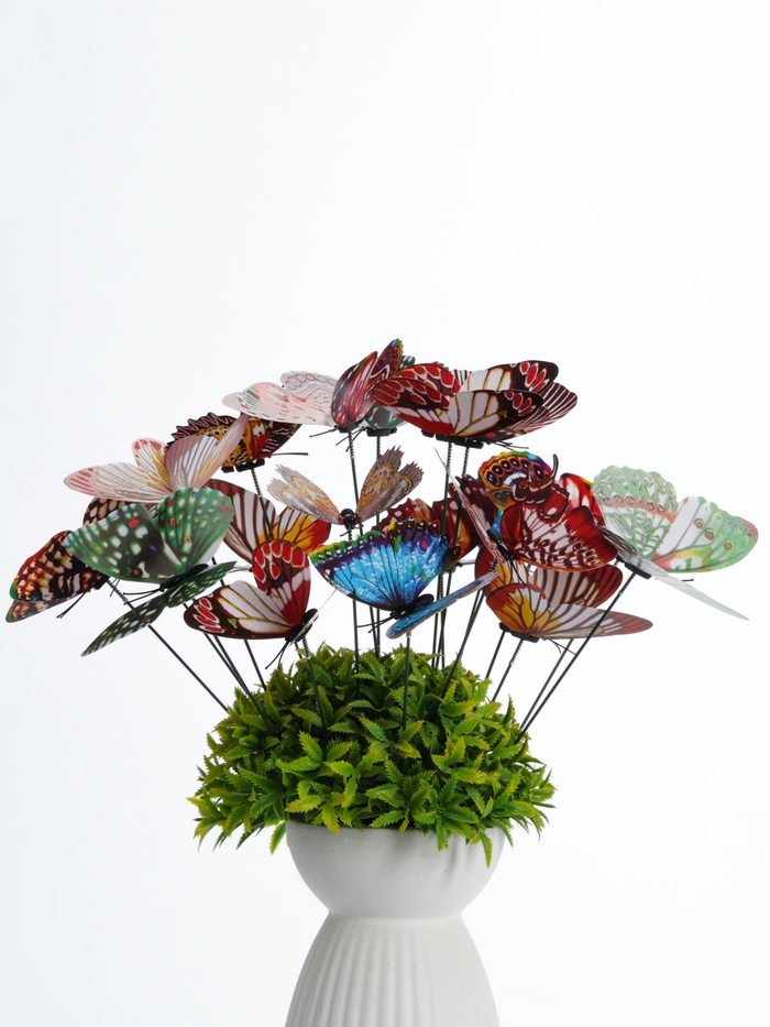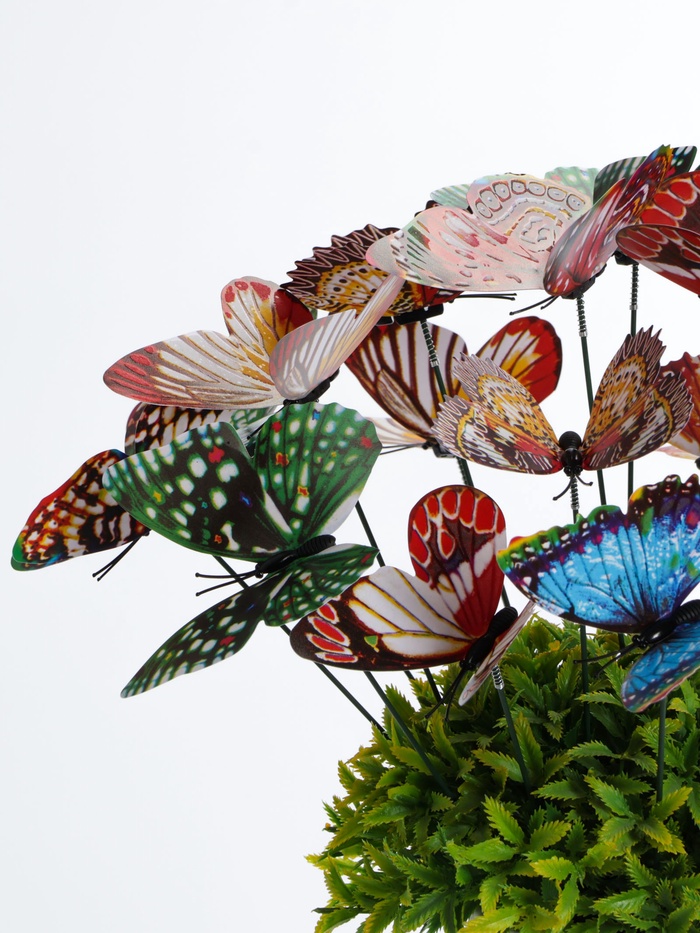 Садовые штекеры «Бабочки» (набор 20 штук, 9 см) — это украшения для клумб, цветочных горшков и кашпо. Набор создаёт эффект стайки бабочек над растениями в дневное время.