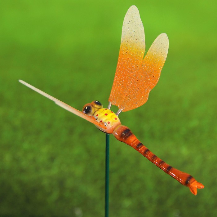 * Заметная высота: при длине 40 см фигурки стрекоз хорошо видны среди цветущих растений. Такой размер делает их выразительными элементами садового декора.