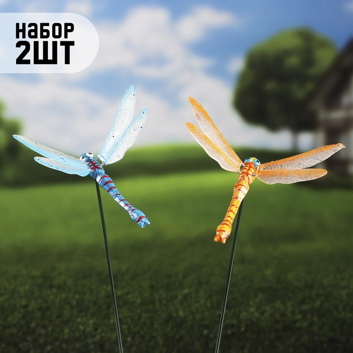Воздушность в ландшафте: набор из двух штекеров добавляет в сад ощущение лёгкости и движения. Парное размещение создаёт иллюзию порхающих стрекоз, застывших в изящном полёте.