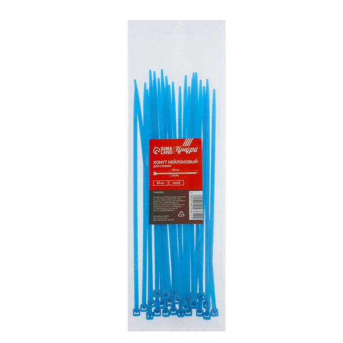 Хомут нейлоновый для стяжки, ТУНДРА, 3,6х200 мм, синий, 25 шт