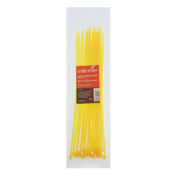 Хомут нейлоновый для стяжки, ТУНДРА, 3,6х250 мм, желтый, 25 шт