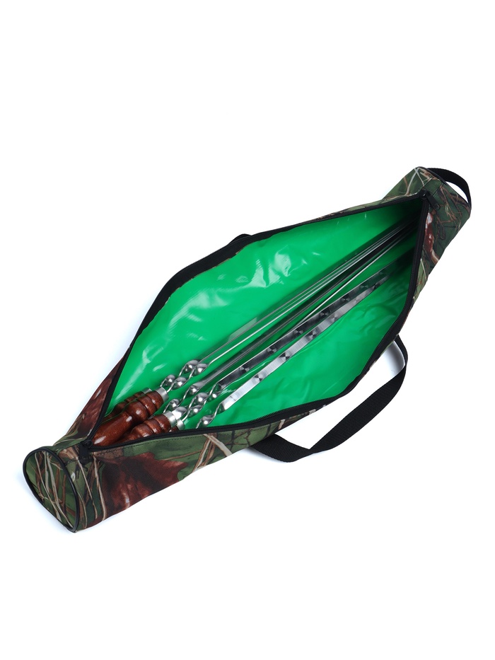 УЦЕНКА Набор шампуров в тубусе, 6 шт., деревянная ручка «Фигурная», 73(50)×1.2×0.25 см, цвет камуфляж