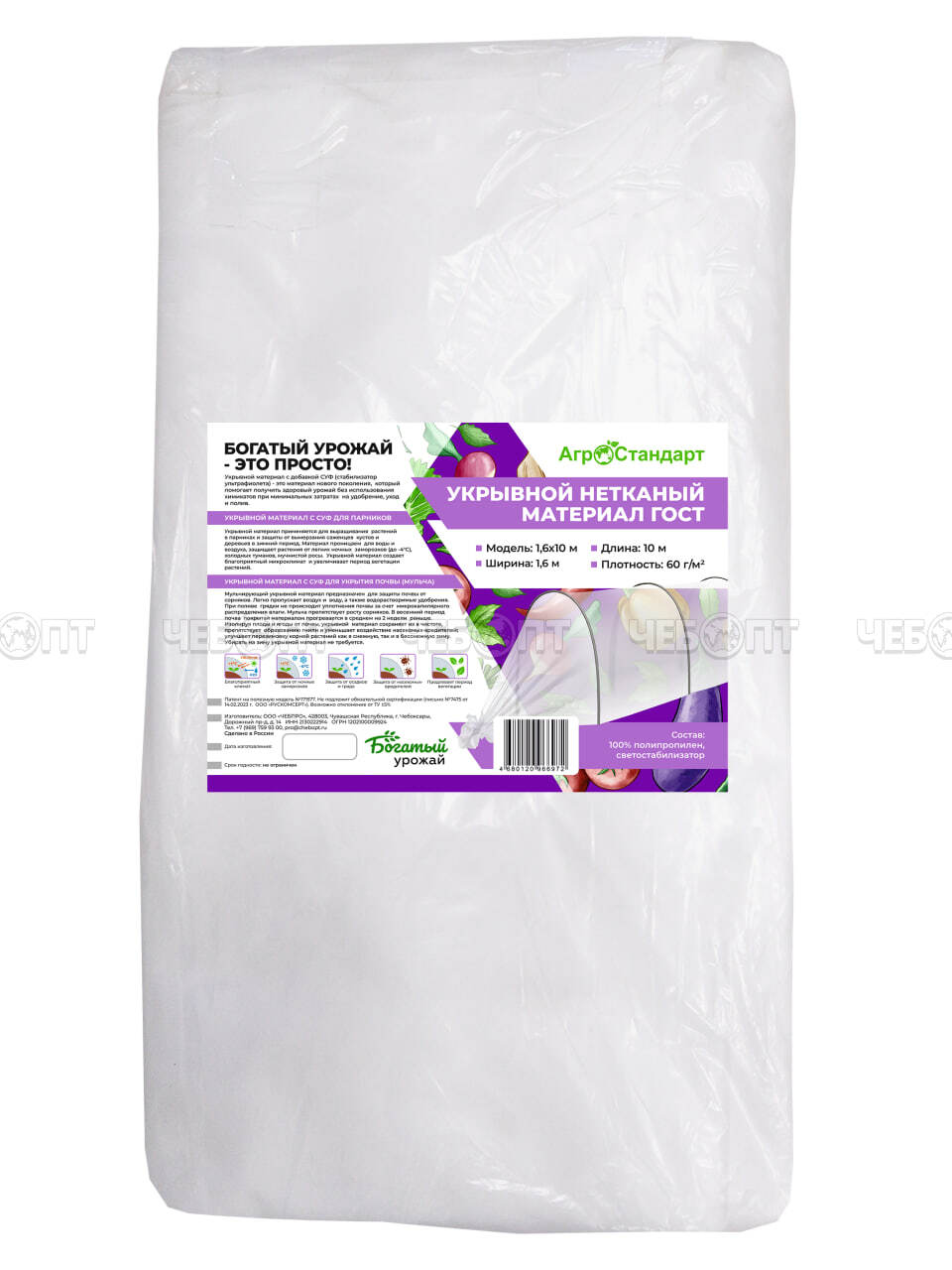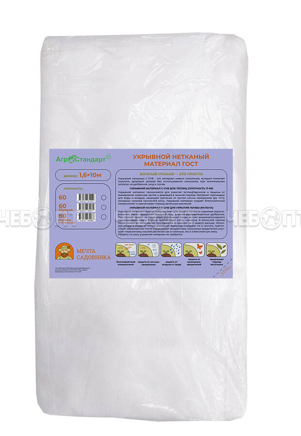 Укрывной материал (спанбонд) АгроСтандарт плот. 60 (ширина 1,6 м, длина 10 м) с СУФ ГОСТ [10] МПС СобПр