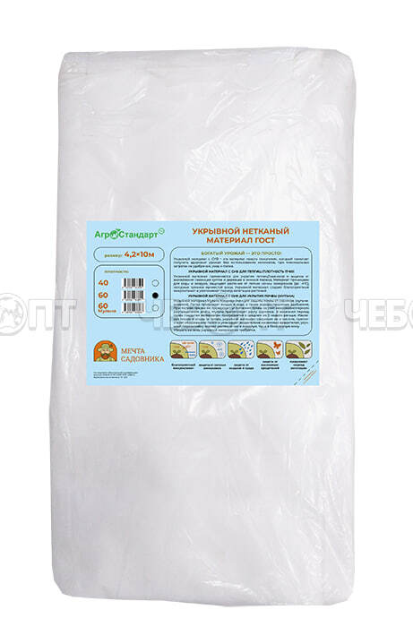 Укрывной материал (спанбонд) АгроСтандарт плот. 60 (ширина 4,2 м, длина 10 м) с СУФ ГОСТ [5] МПС СобПр