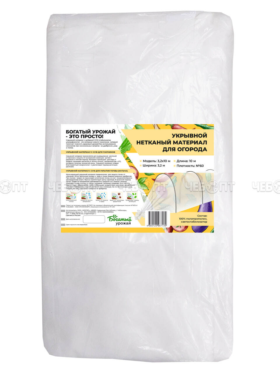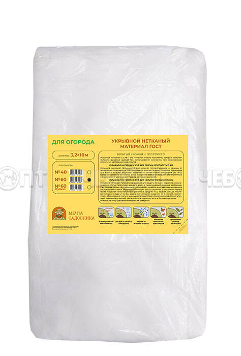 Укрывной материал (спанбонд) ДЛЯ ОГОРОДА № 60 (ширина 3,2 м, длина 10 м) с СУФ [5] МПС СобПр