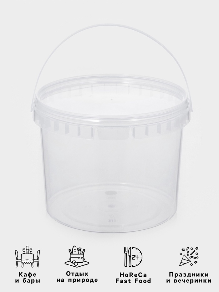 Ведро одноразовое с крышкой, 3 л, d=19 см, пластик пищевой, прозрачное