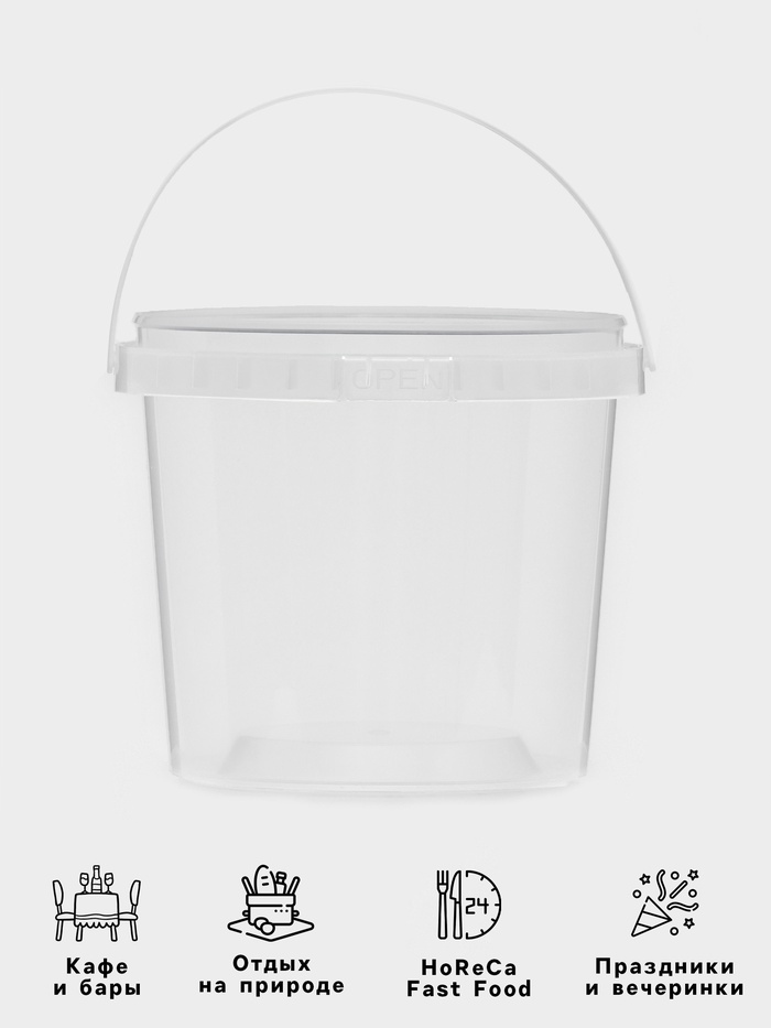 Ведро с ручкой одноразовое, пластик, 1 л, пищевое, прозрачное