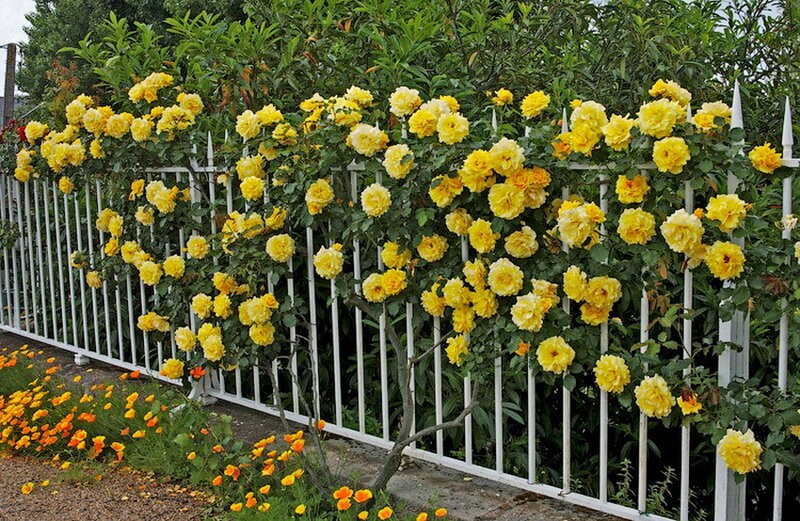 Роза Казино плетистая, Imperial Rose - обильно цветущая, очень устойчива к заболеваниям, цветет повторно. Цветки розы крупные, лучше всего выглядят полностью распустившись, когда масса мелких темно-желтых внутренних лепестков контрастирует с более бледными и крупными внешними. Цветки обычно появляются по одному, как у чайно-гибридных роз, в первое цветение, и кистями, как у флорибунд, в повторное. Аромат довольно насыщенный, фруктовый. Листва темная, куст раскидистый. Может применяться для вертикального озеленения невысоких опор и в качестве почвопокровной розы.
