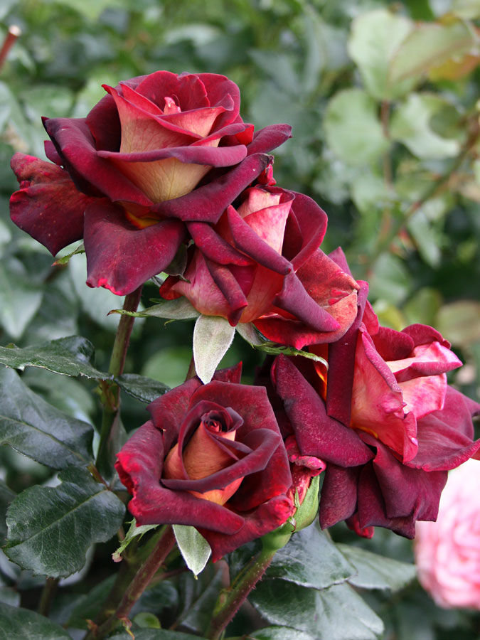 Дополнительно: Цветки бархатисто-красные, позднее почти черные, с золотисто-желтой изнанкой. Аромат легкий или отсутствует. Цветки бокаловидные, состоят из 30-35 лепестков, формируются обычно по одному на цветонгосе. Куст ветвистый, средней высоты. Лучше сажать на место, где преобладает утреннее или вечернее солнце. Характеризуется высокой устойчивостью к заболеваниям.