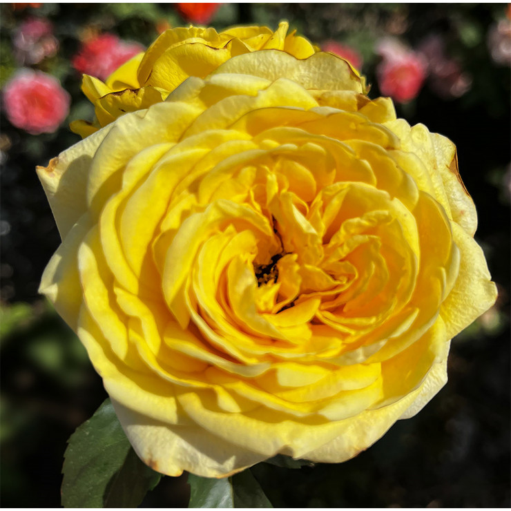 Желтая роза, устойчивая к выгоранию. Куст компактный, с мелкими шипами. Цветки крупные, насыщенно-желтого цвета, с плотными лепестками, практически не повреждаются погодными факторами. За сезон формируется 2-3 волны цветения. Бутоны распускаются поочередно и держатся на растении долго, до 2-2,5 недель, создавая эффект длительного и обильного цветения. Цветки устойчивы к осыпанию, могут быть использованы для срезки.