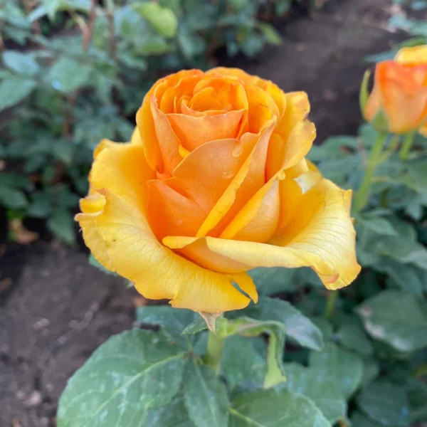 Элегантный сорт с очень крупными густомахровыми цветами теплого абрикосово-оранжевого оттенка, с золотистыми переливами и румянцем по краям лепестков. Бутоны классической бокаловидной формы. Имеет легкий фруктовый аромат. Относится к повторноцветущим, цветет обильно, формирую на концах побегов по 3-5 бутонов, продолжительно, длительно сохраняет свежесть в срезке. Кусты выносливые, с большим количеством темно-зеленых глянцевых листьев. Отлично подстраивается под неблагоприятные погодные условия. Во второй половине лета требует профилактических обработок против грибковых заболеваний
