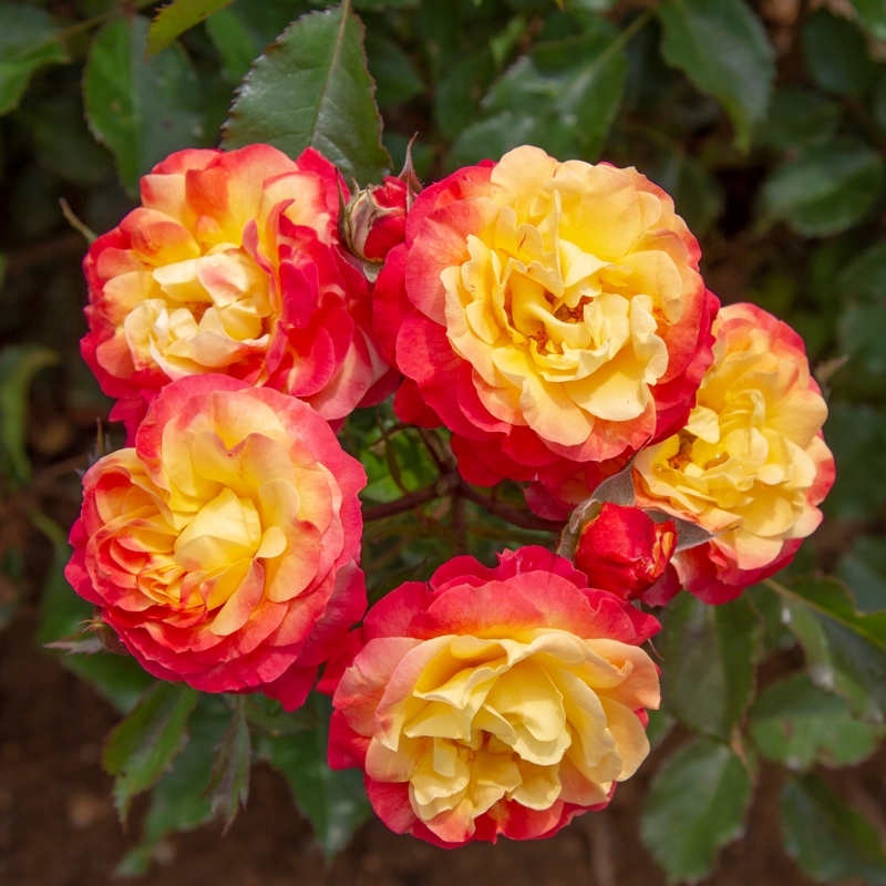Название сорта можно перевести как "Жар-птица". Окраска цветков очень яркая, сочетает в себе жёлтое основание лепестков и интенсивно красные края. Сорт полностью устойчив к ЧП, устойчивость к МР выше средней.