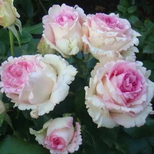 Высокоустойчивый к болезням сорт с нежно-розовыми крупными цветками. Невысокий, очень ветвистый клаймер. Листва крупная, яро-зеленая. Цветки розы Пьер де Ронсар густо-махровые, тяжелые поникают под собственным весом. Лепестки розы кремово-белые с розовым краем, но иногда розовый цвет в бутоне розы преобладает.