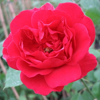 Цветки ярко-малиновые, с алым отблеском в самом начале, затем приобретают слегка пурпурный налет и выгорают до вишневых. Появляются в кистях по 3-15 шт, на длинных побегах, не боятся ни жары, ни дождя. Цветение очень обильное. Куст высотой 200-300 см.