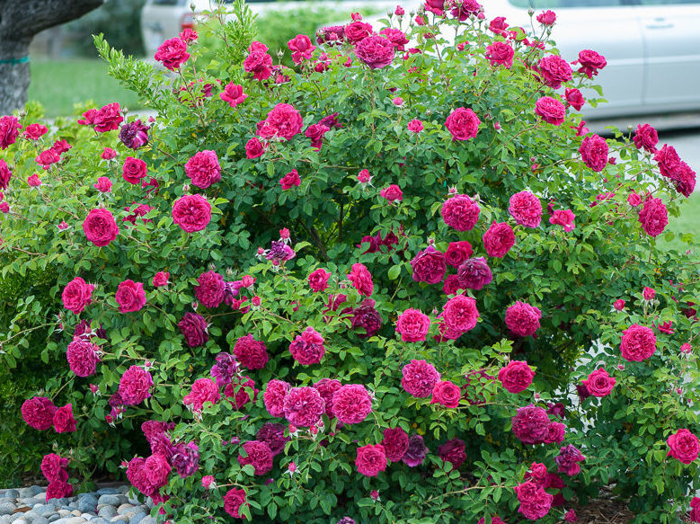 Сортовая разновидность розы Вильям Шекспир характеризуется достаточно большими цветами ярко-красного или бордового оттенка. Многие садоводы отмечают, что данный сорт чем-то напоминает пионы. В большинстве случаев куст данного ботанического вида пышный и высокий. Листва растения отличается зеленоватым оттенком и матовой поверхностью. Внешние бутоны выполнены в чашевидной форме, диаметр которых составляет 10-15 см. Интересным свойством вида является постепенное изменение цвета лепестков от красного к лиловому оттенку.
