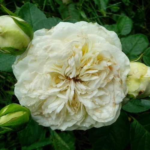 Шраб. Бутоны конусовидные бело-кремовые, есть слегка отличимый зеленый оттенок. Когда цветки распускаются, они становятся просто кремовыми, интенсивность цвета слабая. Это кустарник с крупными цветками, в диаметре некоторые достигают 100мм. На одном бутоне формируется до 100 лепестков. Аромат слабый, есть легкая нотка аниса. Кусты этого сорта вырастают не более 1 метра, в ширину крона может достигать 70см. Очень красивая листва, которая обладает ярким зеленым оттенком. Глянцевая поверхность добавляет шарма растению.