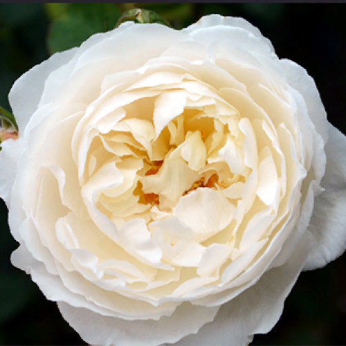 Английская. Сорт хорошо разветвленный, высотой 1-1,2м и диаметром 100см. Прямые, крепкие стебли с деревянистой коричневой кожицей и темно-зелеными листьями с глянцевой поверхностью. Колючки немногочисленны. Шаровидные бутоны кремового цвета с сильным розовым оттенком в штрихах или крапинках. Цветки огромные, чашевидные, полураскрытые и полностью раскрытые, диаметром 8-10см, кремово-белые, не пёстрые, имеют легкий желтый оттенок. Густомахровые бутоны имеют 80-90 лепестков, а соцветия состоят из 1-3 цветков. Куст имеет приятный, медово-миндальный аромат.