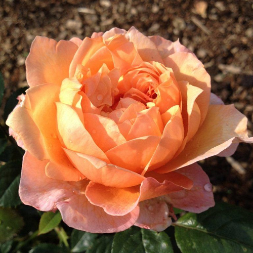 Чайно-гибридная. Изящная, но сильнорослая роза, с пушистым кустом округлой формы. Вырастает до 70-100см, по ширине куст довольно компактный, до 60см. Листья блестящие глянцевые, окрашены в традиционный темно-зеленый цвет. Интересны округлые и яйцевидные бутоны, имеющие сложный розово-оранжево-жёлтый оттенок. Распустившиеся цветки окрашиваются в оранжево-абрикосовые тона цвета заката, с кремовыми внешними лепестками. Сами розы имеют привлекательную старинную форму, они довольно крупные, в диаметре достигают 8-10см. В густомахровой чаше либо розетке цветка содержатся от 40 до 60 лепестков. Появляются цветки одиночно либо собираются в небольшие, малоцветковые соцветия. Роза, обладающая довольно насыщенным приятным ароматом, который можно описать как смесь запахов персика, ноток меда, цитрусовых, а также абрикоса. Многим он напоминает аромат средиземноморских садов._x000D__x000D_Поставка: весна 2026г.