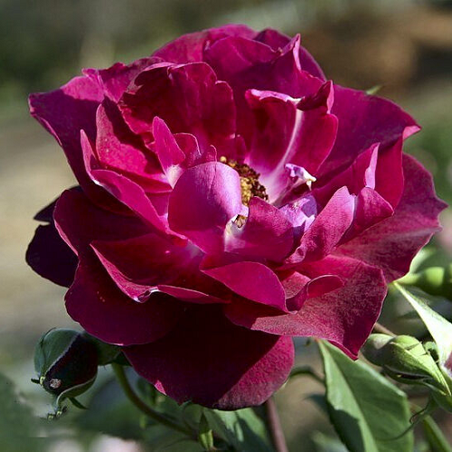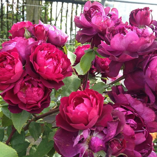 Шраб. Роза образует высокие раскидистые кусты высотой 120-150см и шириной до 200см. Побеги сильные и крепкие. Крона густая, с темно-зеленой матовой листвой. В соцветиях на каждом стебле образовывается по 15-20 цветков. Розу отличает слабый, но необычный аромат с мускусной базой и пряными оттенками корицы и других специй. Окраска цветков изменчивая. Сначала лепестки малиновые, затем становятся пурпурными, с более бледной изнанкой. При этом их тон все равно яркий, насыщенный. Сами цветки в полном роспуске имеют средние размеры, диаметр в 7-8см. Розы шарообразные, внутри венчика присутствуют желтые тычинки.