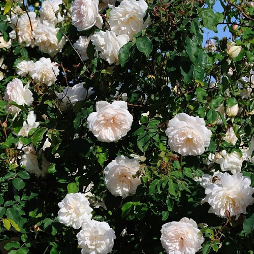 Плетистая. Цветки изумляют своей красотой и размером, достигая в диаметре 10см. Они махровые, с количеством лепестков до 30, и обладают кремовым оттенком со светло-розовыми и лососёво-жёлтыми бликами. Волнистые лепестки придают цветкам особый шарм, а сладкий аромат завораживает и погружает в атмосферу роскошных старинных садов. Роза образует соцветия по 3-9 цветков, цветение которых почти непрерывно в течение всего сезона, что делает её настоящим украшением для любого участка. Эта роза может вырастать до 6м в высоту, что позволяет использовать её в качестве живой изгороди или декоративного элемента на стенах и опорах. Листва крупная, обильная и бледно-зеленая, что создает прекрасный контраст с кремовыми цветками и делает растение ещё более привлекательным._x000D__x000D_Поставка: весна 2026г.