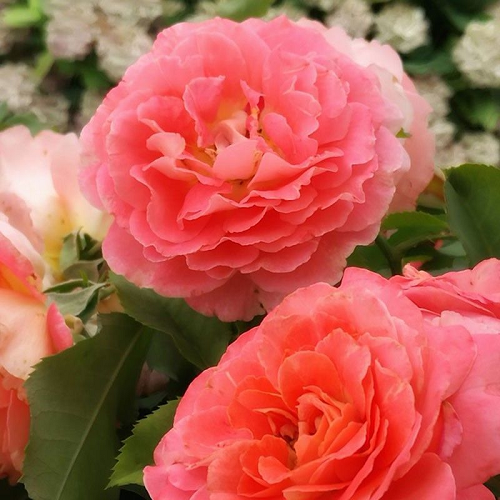 Флорибунда. Цветки оранжевые с переходом в бледно-розовый на кончиках лепестков, густомахровые (до 100 лепестков), старинной формы, собраны в соцветия. Аромат лёгкий. Цветение раннее, с хорошим повторным цветением с начала сезона до заморозков. Куст энергичного роста, высотой 100-150см. Листва тёмно-зелёная. Молодые побеги красные. Эта роза с очарованием старой розы, у которой цветки апельсинового с розовым тонами контрастируют с темно-зеленой листвой, предназначена для заполнения и украшения больших пространств. Размещение на солнечных местах._x000D__x000D_Поставка: весна 2026г.