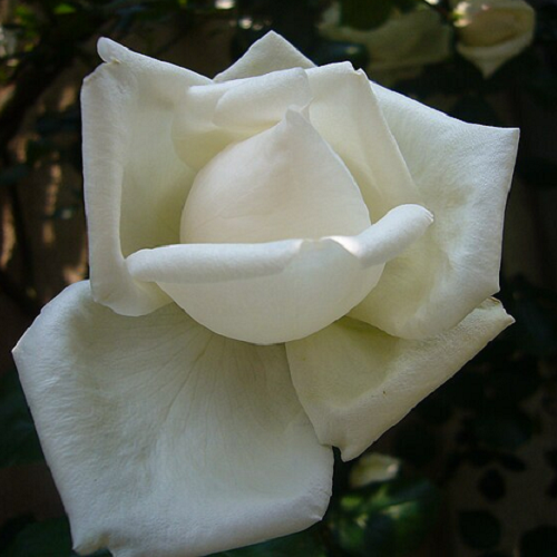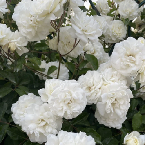 Японская. Клаймбер. Белая с кремовой серединкой. Аромат умеренный. Размер цветка 10-11см. Крупная, очень махровая, с высоко центрированной формой цветка. Цветет в течение всего сезона. Вьющаяся. Блестящая темно-зеленая листва. Высота до 300см. Устойчивость к мучнистой розе и черной пятнистости: средняя. Устойчивость к дождю средняя. Цветение повторное.