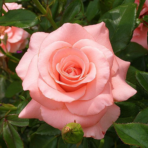 Чайно-гибридная. Отличается устойчивостью перед морозами, болезнями и вредителями, неблагоприятными погодными условиями. Высота кустика достигает от 80 до 100см, а ширина – до 90см. Цветение обильное и продолжительное. Цветочки окрашены в лососево-розовый цвет. Их диаметр – 10см. На протяжении всего периода цветения от куста исходит легкий аромат.