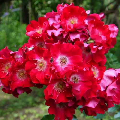 Плетистая. Характеризуется растение сильной раскидистостью ветвей, способностью плестись, обильной загущенностью мелкими листьями темно-зеленого цвета с выраженным блеском, а также наличием многочисленных острых шипов на побегах. В благоприятной среде куст вытягивается в высоту до 2-2,5м. Мощная раскидистость ветвей делает розовый куст очень объемным – диаметр около 150см. Характерной особенностью является отсутствие листьев в нижней части куста у взрослого растения. В период вегетации на каждом стебле формируется около 10 бутонов, собранных в пышные многоцветковые соцветия.