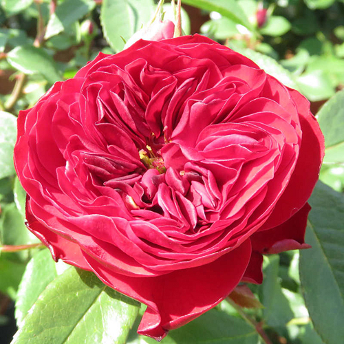 Флорибунда. Бокаловидные бутоны, появляющиеся на культуре, окрашены в розово-кремовый оттенок. По мере распускания они приобретают сочный ярко-красный, а ближе к осени — темно-красный или винный тон. Цветки этой розы махровые, крупные, до 12см в диаметре. Каждый из них состоит примерно из 80 лепестков, отчего выглядит плотно набитым. Форма цветка — ностальгическая, старинная, розетковидная. На одном стебле формируется от 3 до 5 бутонов со слабым, но стойким и очень приятным запахом. Цветет непрерывно в течение всего вегетационного периода, вплоть до наступления поздней осени.