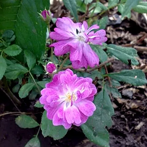 Полиантовая. Цветки некрупные лилово-сиреневого цвета, что является редкостью для полиантовых роз, с редкими небольшими продольными белыми полосками по лепесткам, махровые, собраны в большие соцветия. Получена от скрещивания карликовой многоцветковой розы с повторно цветущим сортом чайно-гибридных, поэтому сорт радует продолжительным и неоднократным цветением с весны до первых заморозков. Одним из качеств сорта является обильное и непрерывное цветение, устойчивость к холодам и к избыточной влажности почвы, а так же к болезням. Кусты невысокие, компактные, раскидистые с ярко-зеленой мелкой листвой. Аромат нежный уловимый. Обладает стойким иммунитетом. Высота куста – 60см. Ширина – 50см.