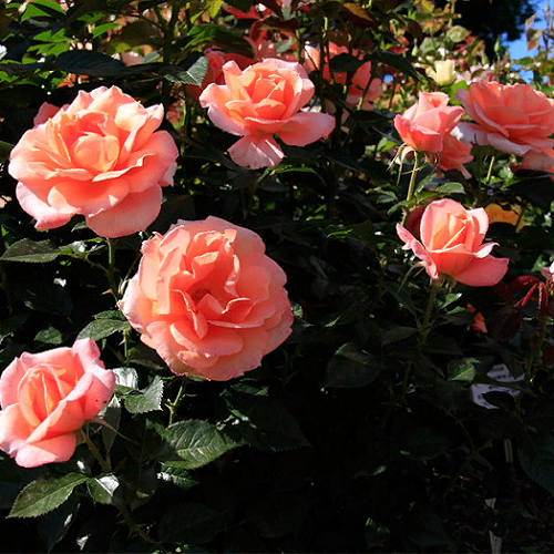 Чайно-гибридная. Цвет оранжевый и желтый, с ярко-красными тенями (оранжевый с ярко-красными переливами). Сильный аромат. Цветки умеренно-махровые(17-25 лепестков), чашевидной формы. Цветет в течение всего сезона. Высота от 60 до 80см.