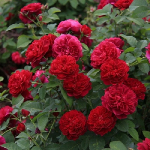 Английская. Одна роз, созданная специально для свадебных церемоний и других торжеств. Куст сильнорослый, со свисающими побегами. Высота до 130см, ширина до 60см. Листья тёмно-зелёные, крупные, полуглянцевые, устойчивые к заболеваниям. Бутоны заострённые, яйцевидные. Цветки диаметром 8-10см, густомахровые (до 120 лепестков), розетковидные квартированные, бархатистые тёмно-красные, в основном одиночные или в маленьких соцветиях. Нижняя сторона лепестков с красно-фиолетовым оттенком. Цветок в полном раскрытии показывает золотистые тычинки. Аромат чайный, нежный. Цветение почти непрерывное в течение сезона. Период цветения июнь-октябрь._x000D__x000D_Поставка: весна 2026г.