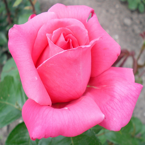 Чайно-гибридная. Это сильнорослый куст с прямостоячими, жесткими побегами, практически лишенными шипов. Крона розы выглядит компактной, ровной и аккуратной благодаря небольшой ширине (около 60см) и высоте растения, колеблющейся от 80 до 100см. Максимальный «рост» многолетника может составлять 1,2м. Побеги растения покрыты крупными листьями с глянцевым блеском и ярко-зеленым окрасом.