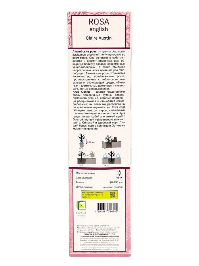 Саженец Роза английская парковая Клэр Остин, туба, 1 шт. Весна 2026