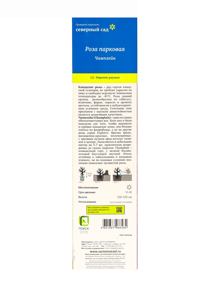 Саженец Роза канадская парковая Чамплейн, туба, 1 шт. Весна 2026