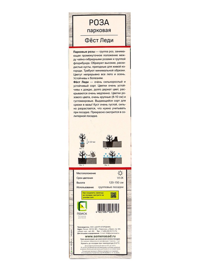 Саженец Роза парковая Фёст Леди, туба, 1 шт. Весна 2026