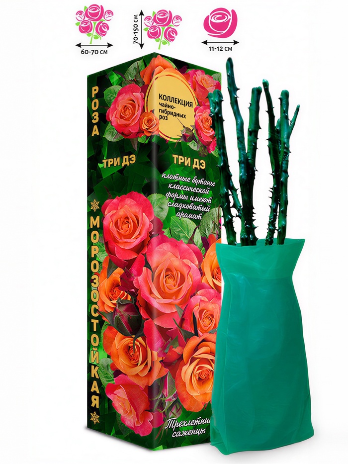 Саженец Роза чайно-гибридная «Три Дэ», 1 шт., Весна 2026