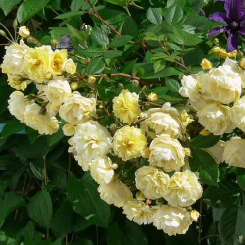 Плетистая-Rambler. Сортосерия «Siluetta». Цветки маленькие, диаметром 3-4 см, махровые, лимонно-жёлтые, в больших зонтиковидных соцветиях. Цветение повторное. Листва высокоустойчивая к чёрной пятнистости и мучнистой росе. Побеги гибкие. Куст пряморастущий, высотой 180 см и шириной 70 см. Розы сортосерии «Siluetta» идеально подходят для небольших садов и выращивания в контейнерах. Зона 6 (до -18ºС).