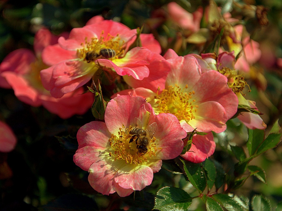 Роза из серии "Bienenweide" ("Пчелиное пастбище"). Очень яркое цветение. Кусты высотой 50-60 см, более высокие, чем у других сортов серии Bienenweide-rosen, поэтому им нужно больше места. Цветки диаметром 3-4 см, простые, абрикосовые с белым центром и жёлтыми тычинками. Очень сильное первое цветение. Листва высокоустойчивая к мучнистой росе и чёрной пятнистости. Очень хорошо сочетается в посадке с сортами «Bienenweide Gelb» или «Bienenweide Rot». Рекомендуется для посадки маленькими группами, для обсадки насаждений по периметру, выращивания в контейнерах.
