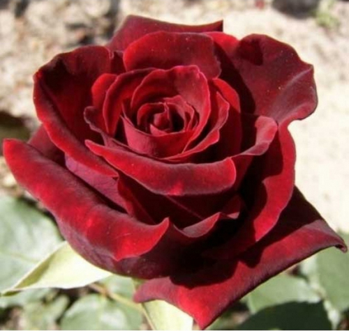Бутоны округло заостренные, почти черные. Цветки темно-красные, бархатистые, стойкие, раскрываются медленно, крупные (9—10 см), густомахровые (50—60 лепестков), очень душистые, большей частью одиночные. Листья темно-зеленые, матовые, молодые — свекольной окраски. Шипы частые. Кусты сильнорослые, густые. Цветет обильно. Для групп, штамбовой культуры. Один из самых темных сортов.