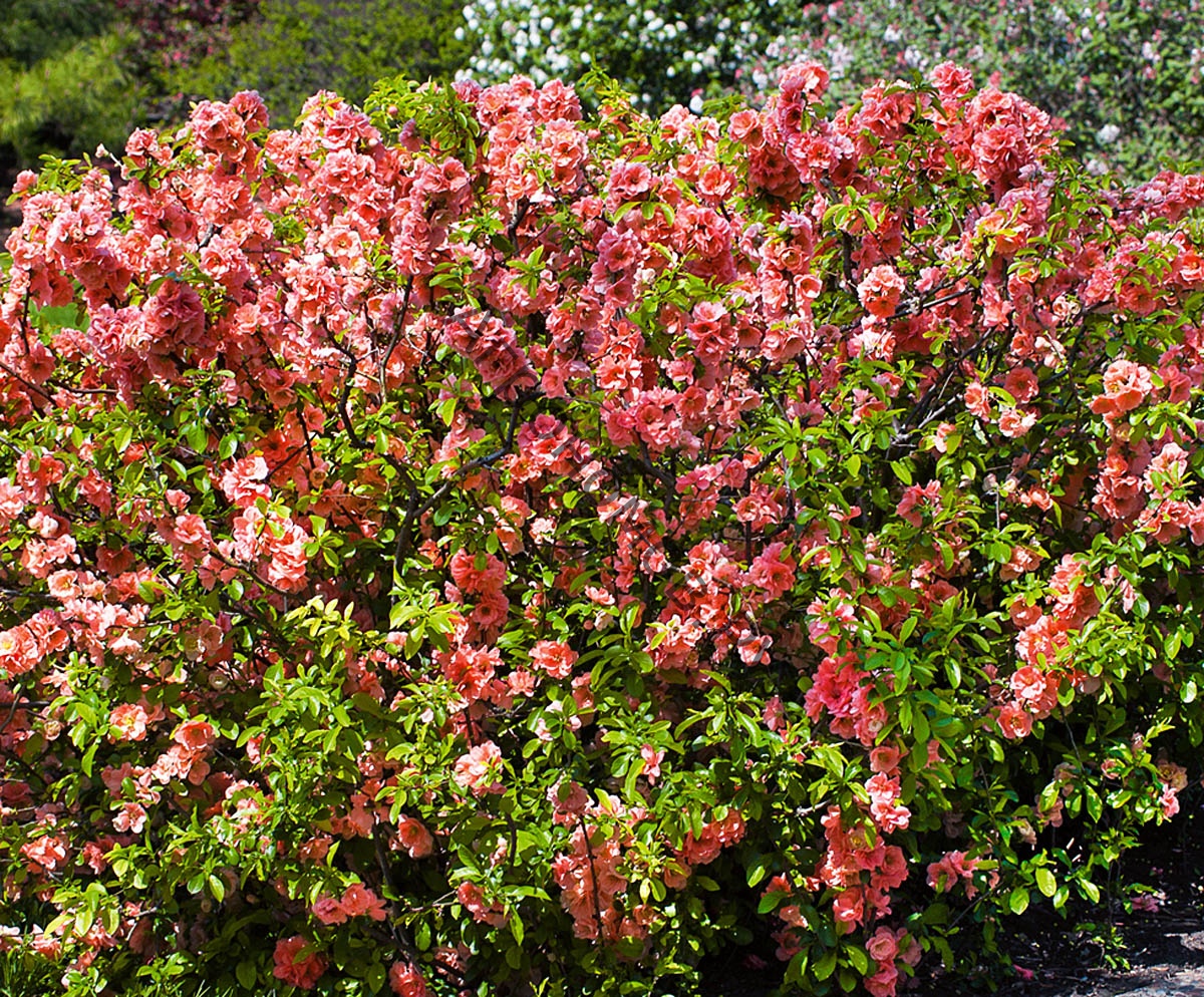 "Раскидистый кустарник высотой от 1 до 3 м. Растет быстро. Долговечна. Листья темно-зеленые, блестящие, при распускании красноватые. Цветет в мае одновременно с распусканием листьев. Цветки персиково-розовые махровые, 3-5 см в диаметре, собраны в кисти по 2-6 шт. Плоды съедобные, созревают в начале октября. Засухоустойчива. Хорошо переносит стрижку. Морозостойка, но в суровые зимы могут подмерзать концы побегов.